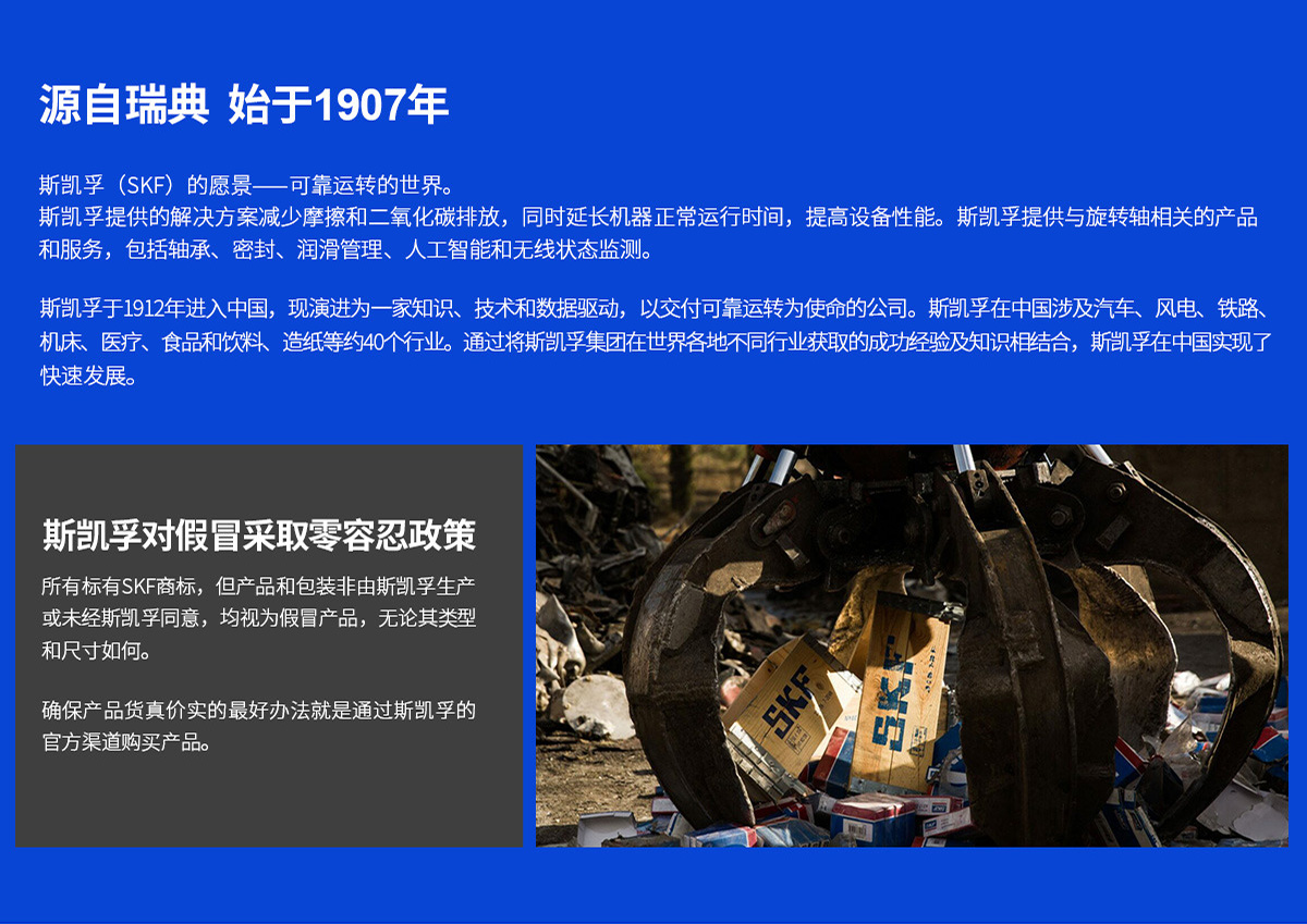 我公司主要经营斯凯孚轴承及SKF轴承单元、密封件、润滑系统、机电一体化、和服务等五大平台产品。随着业务发展需要,我公司已在无锡、上海、天津、广州、常州、盐城、沈阳、上海、深圳等地与多家分支机构和零售门市相互协作,满足用户快速发货的要求。同时,公司拥有经验丰富的技术服务工程师,可提供售后培训和技术支持服务。